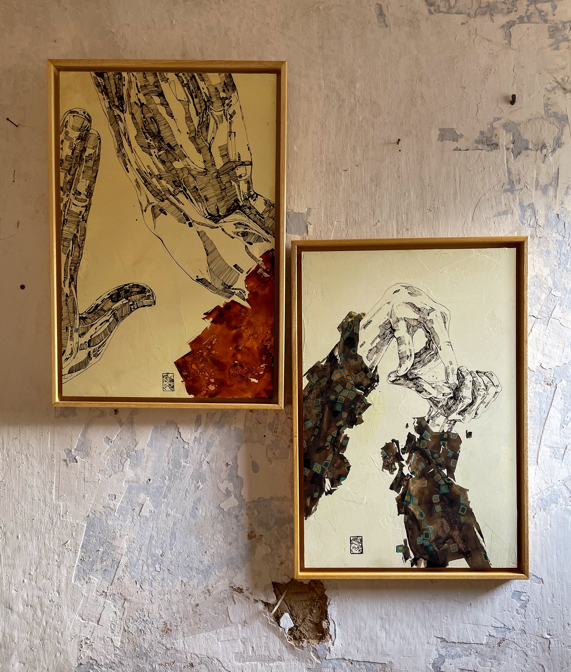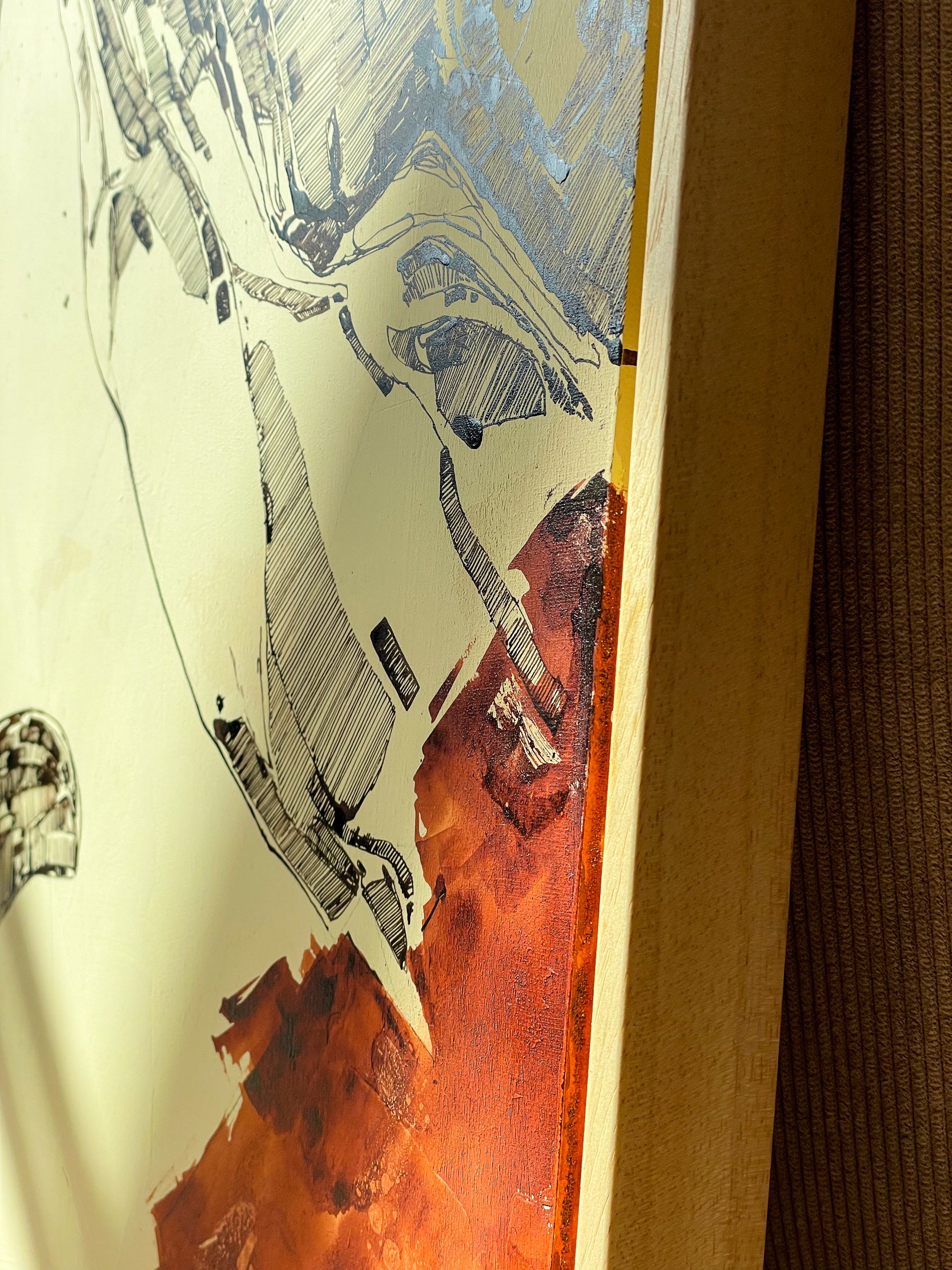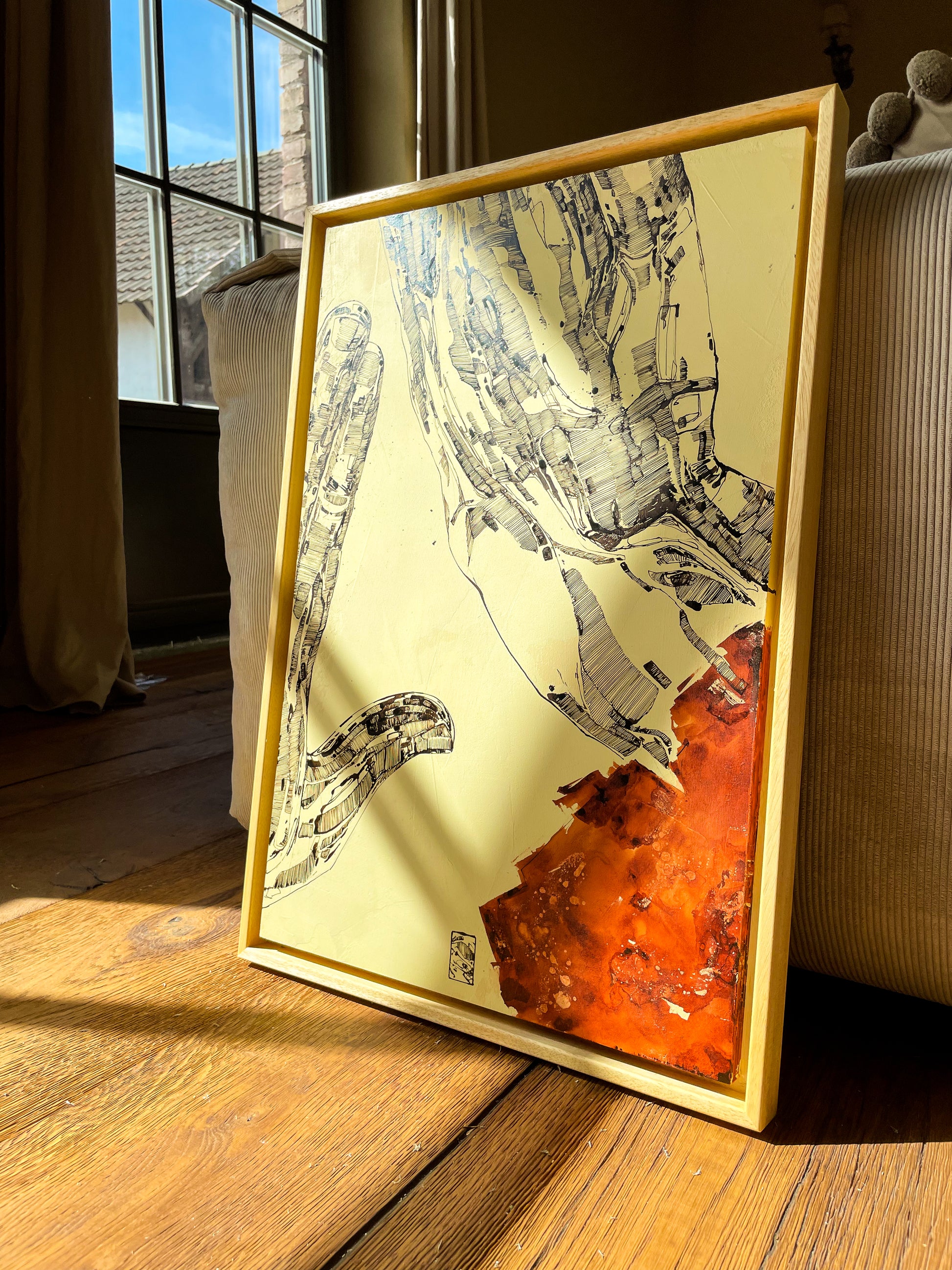 This original drawing is part of the series "Hand Works". All images are drawn on a primed wooden panel. Each work is stamped and signed and has a UV protective varnish.
