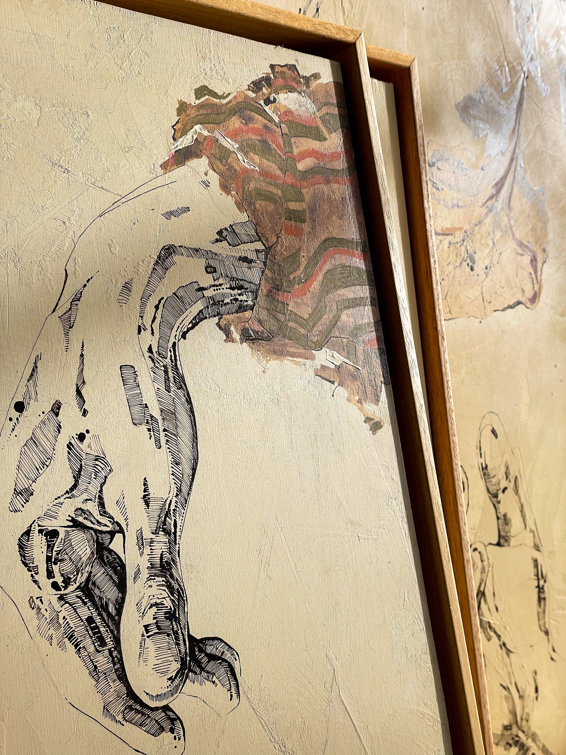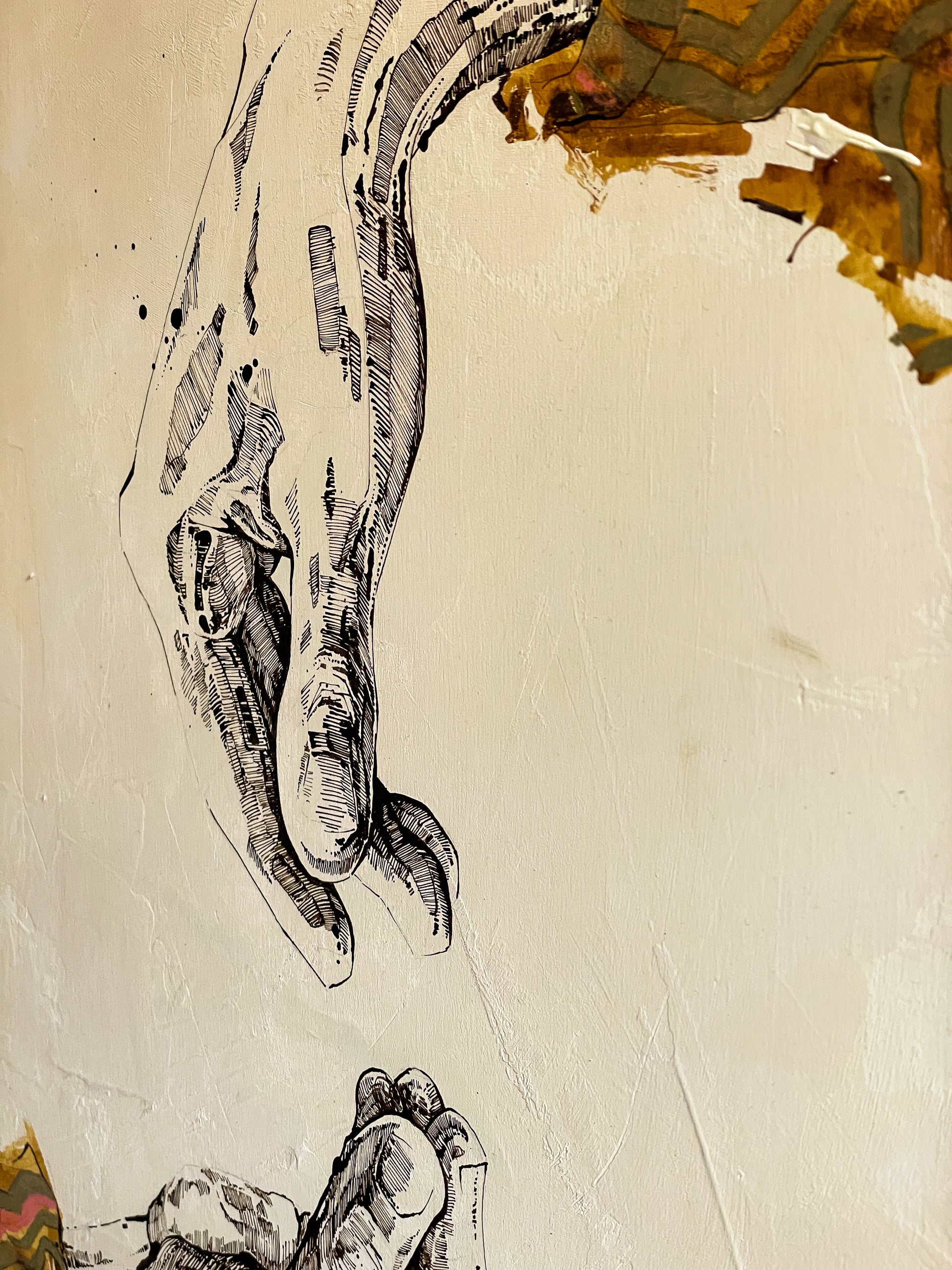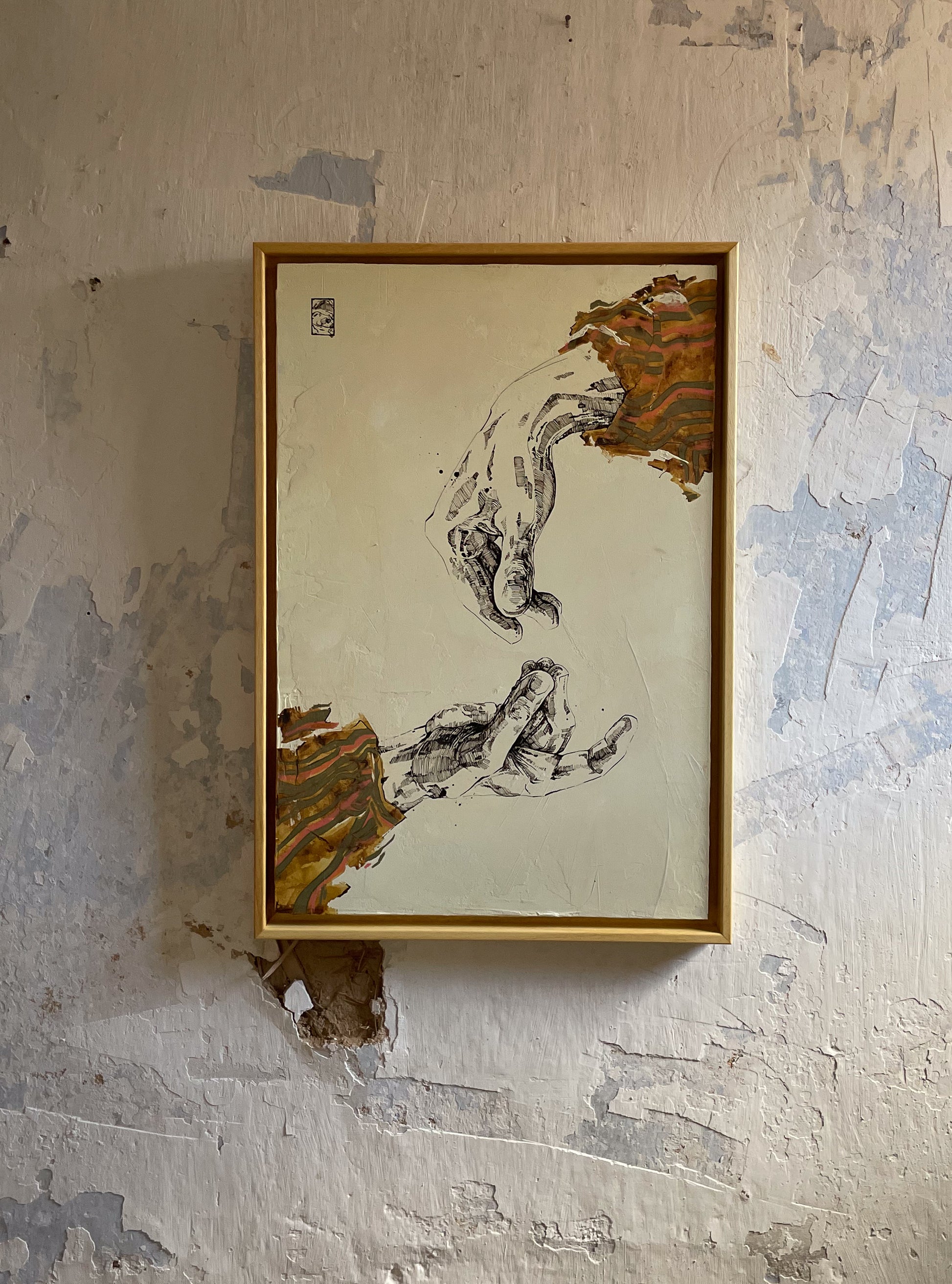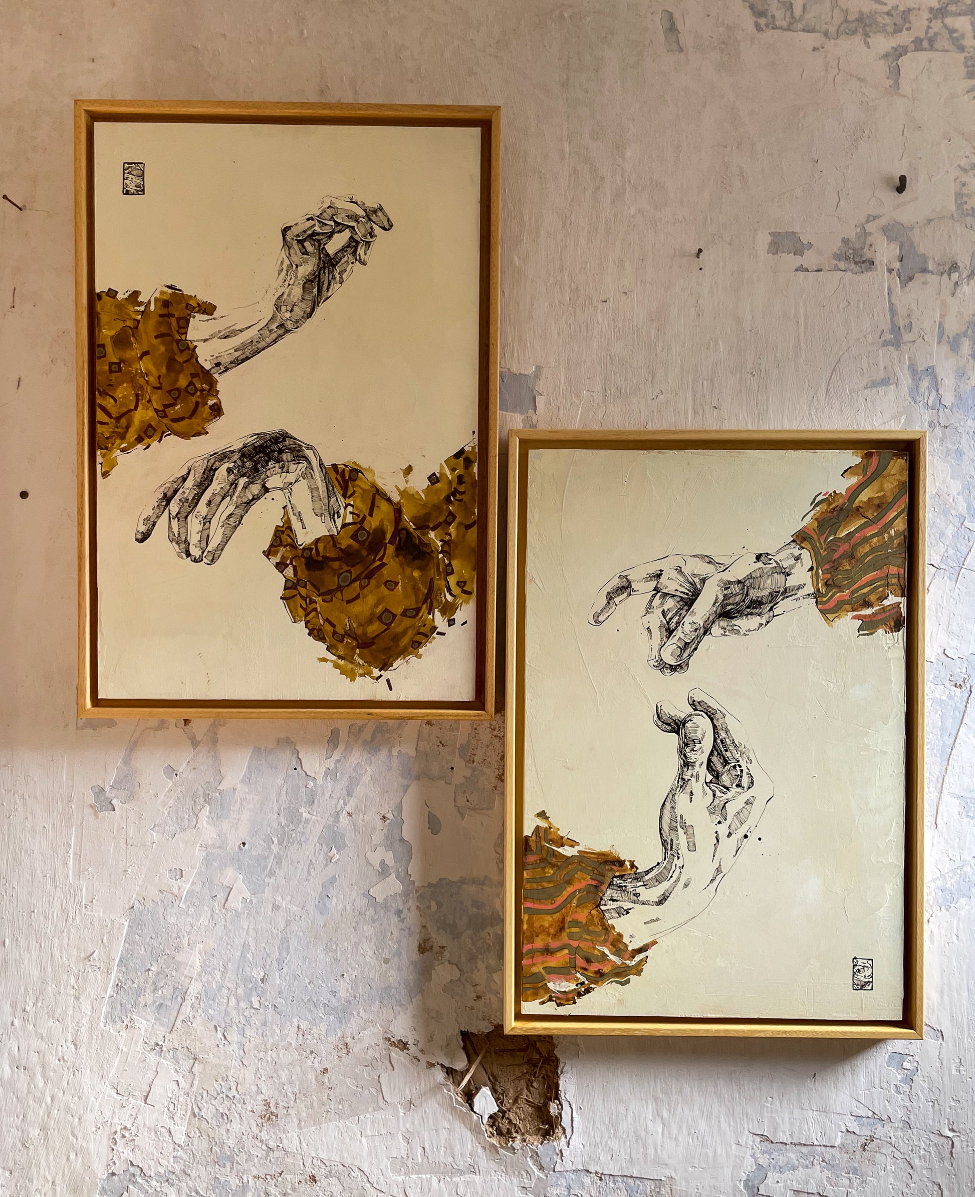 This original drawing is part of the series "Hand Works". All images are drawn on a primed wooden panel. Each work is stamped and signed and has a UV protective varnish.