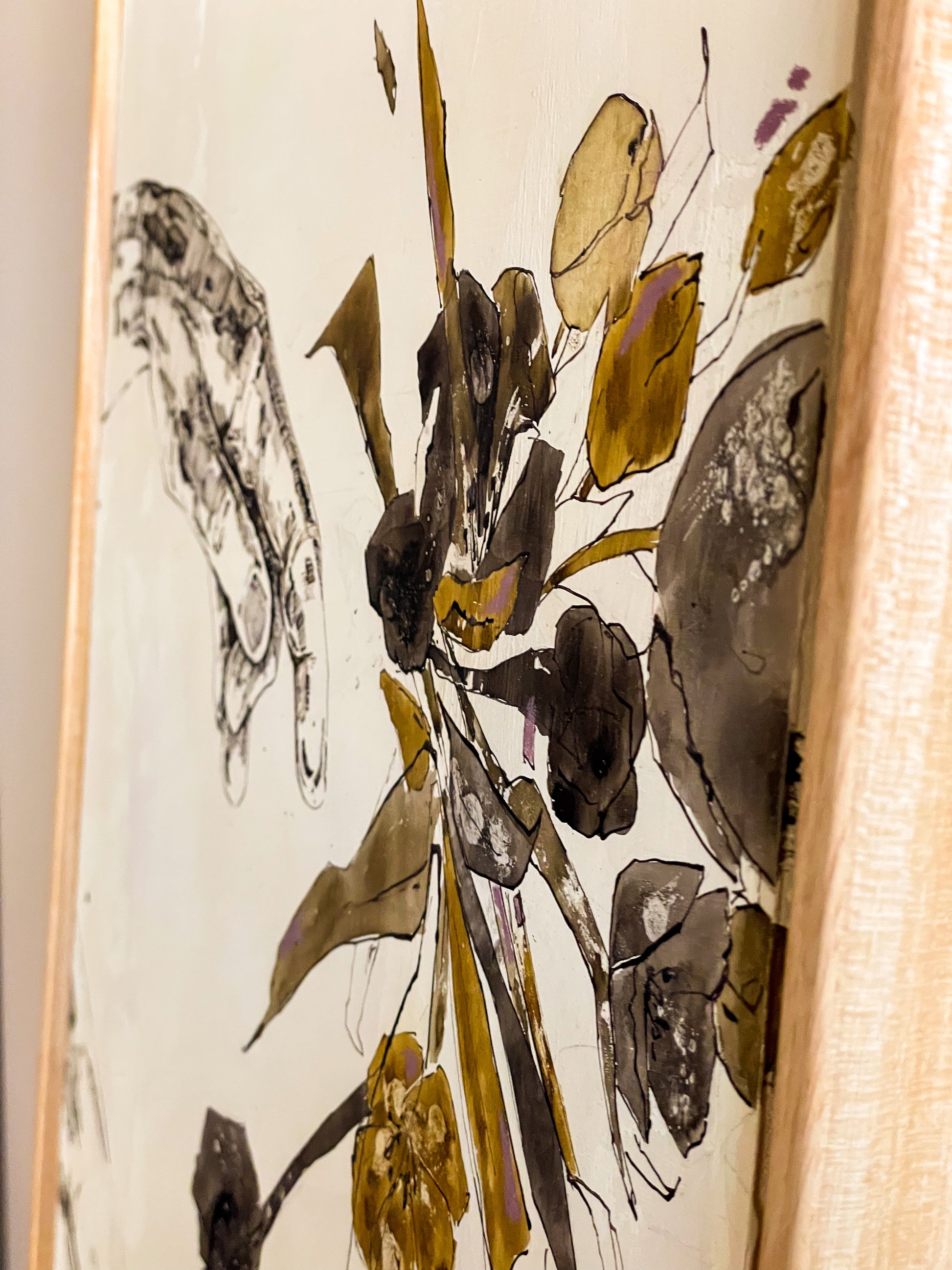 Ink drawing, coloured ink and coloured pencil on wood, 40x60cm, shadow gap