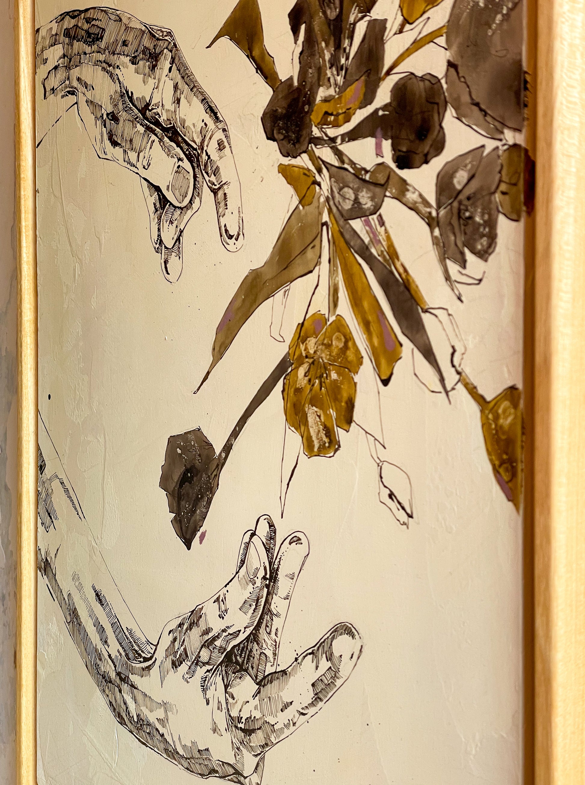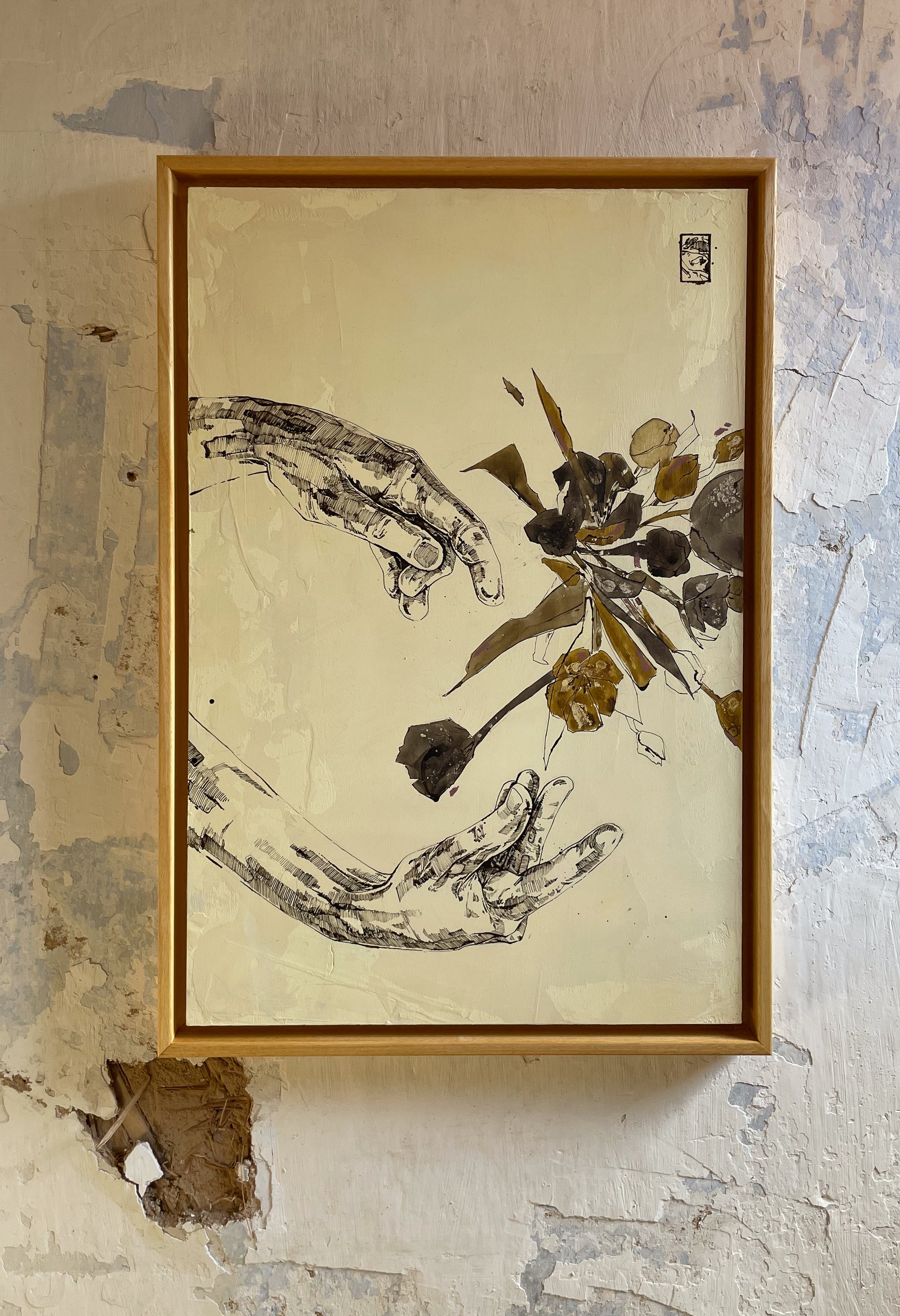 This original drawing is part of the series "Hand Works". All images are drawn on a primed wooden panel. Each work is stamped and signed and has a UV protective varnish.