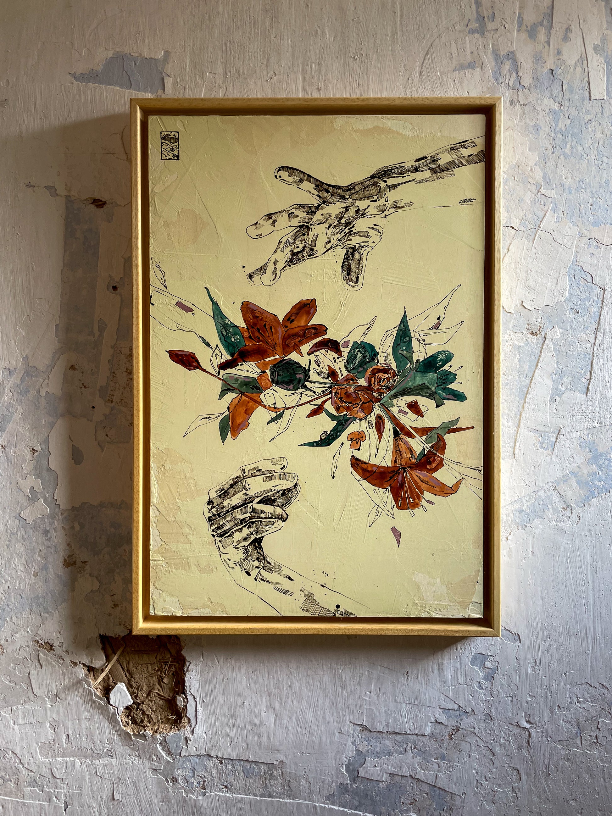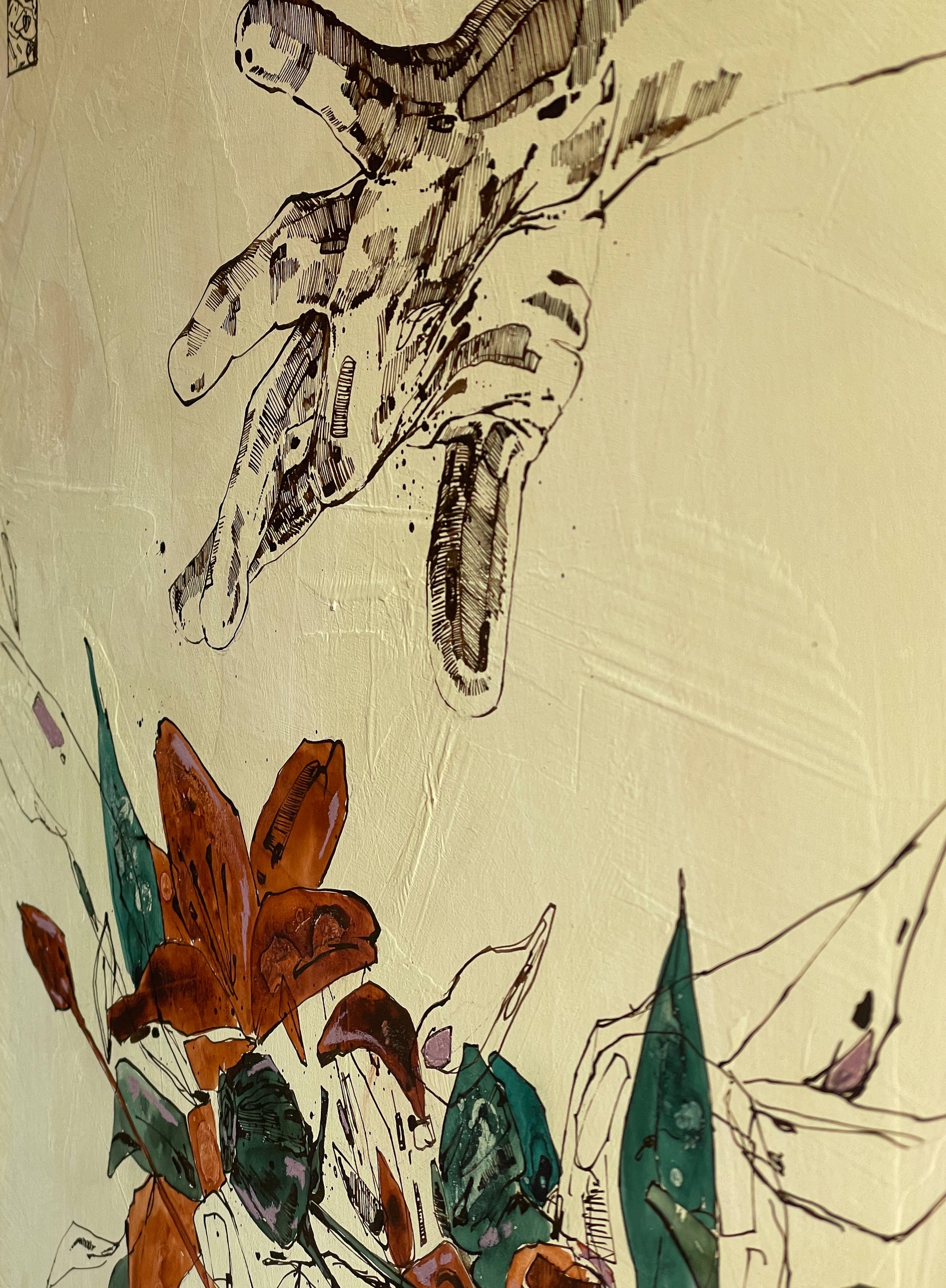 This original drawing is part of the series "Hand Works". All images are drawn on a primed wooden panel. Each work is stamped and signed and has a UV protective varnish.