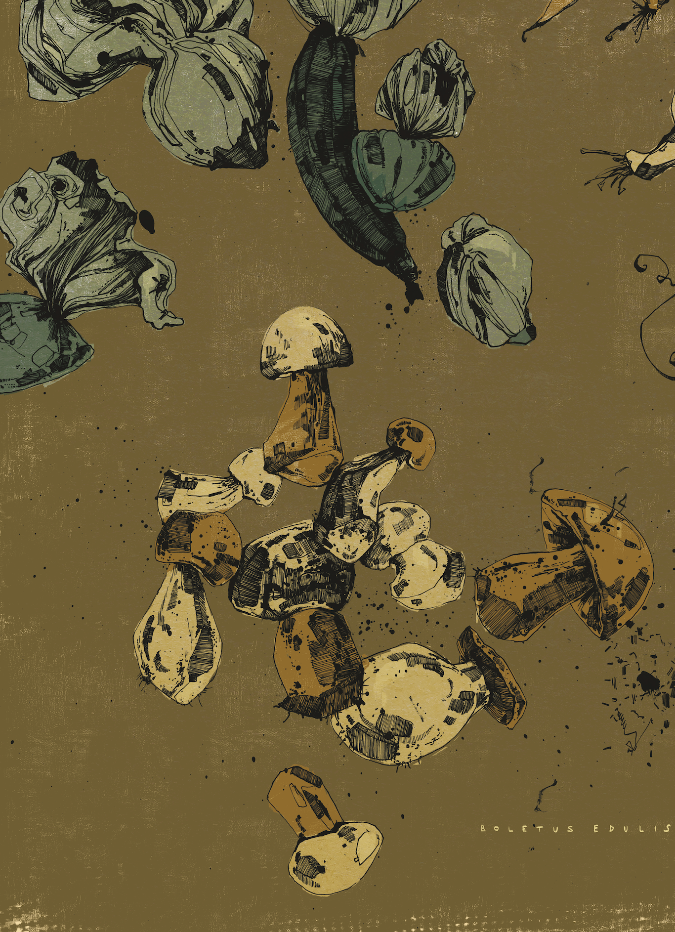 Hand-drawn ink drawings, scanned and digitally colored, poster, 100x70cm, signed